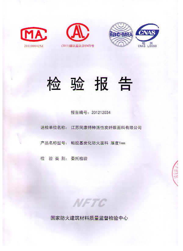 活性碳纖維被檢測報告