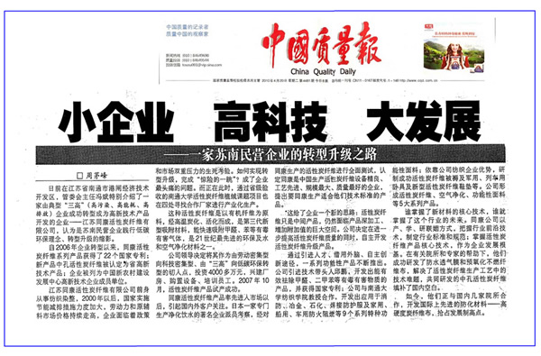 中國(guó)質(zhì)量報(bào)——小企業(yè)、高科技、大發(fā)展"一家蘇南民營(yíng)企業(yè)的轉(zhuǎn)型升級(jí)路"