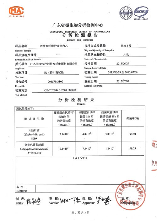 2、高效防菌抑菌,抑制十多種常見病菌,經國家權威機構檢測對大腸桿菌和金黃色葡萄球菌的抗菌率達到99%以上。